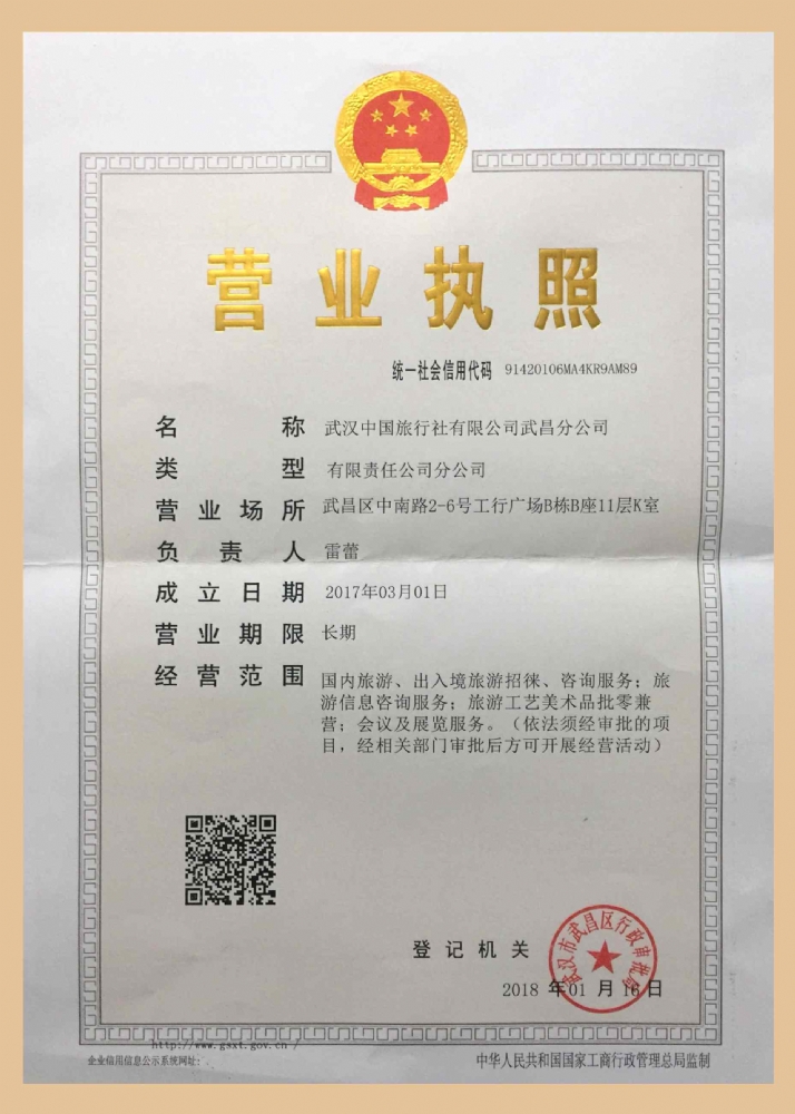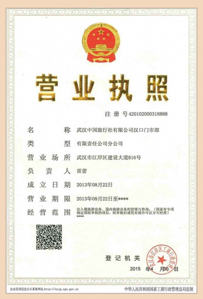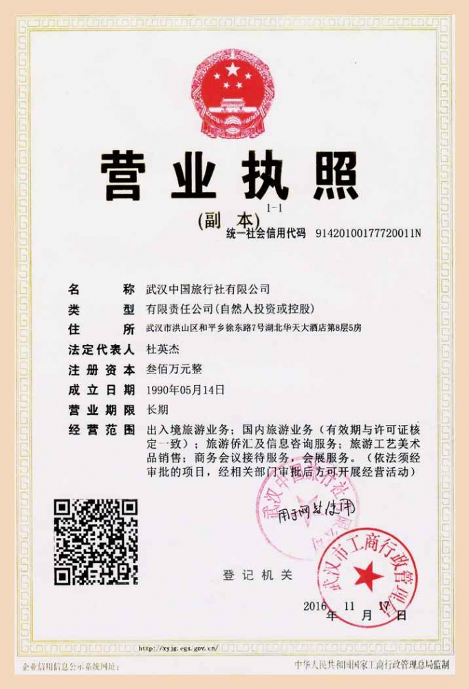 武漢中國旅行社有限公司漢口門市部© 2010 Corporation. 鄂ICP備10203764號國際旅行社許可證編號:L-HUB-CJ00008 中國旅行社集團 中國百強國際旅行社 武漢旅行社24小時微信服務:158-7237-8220
